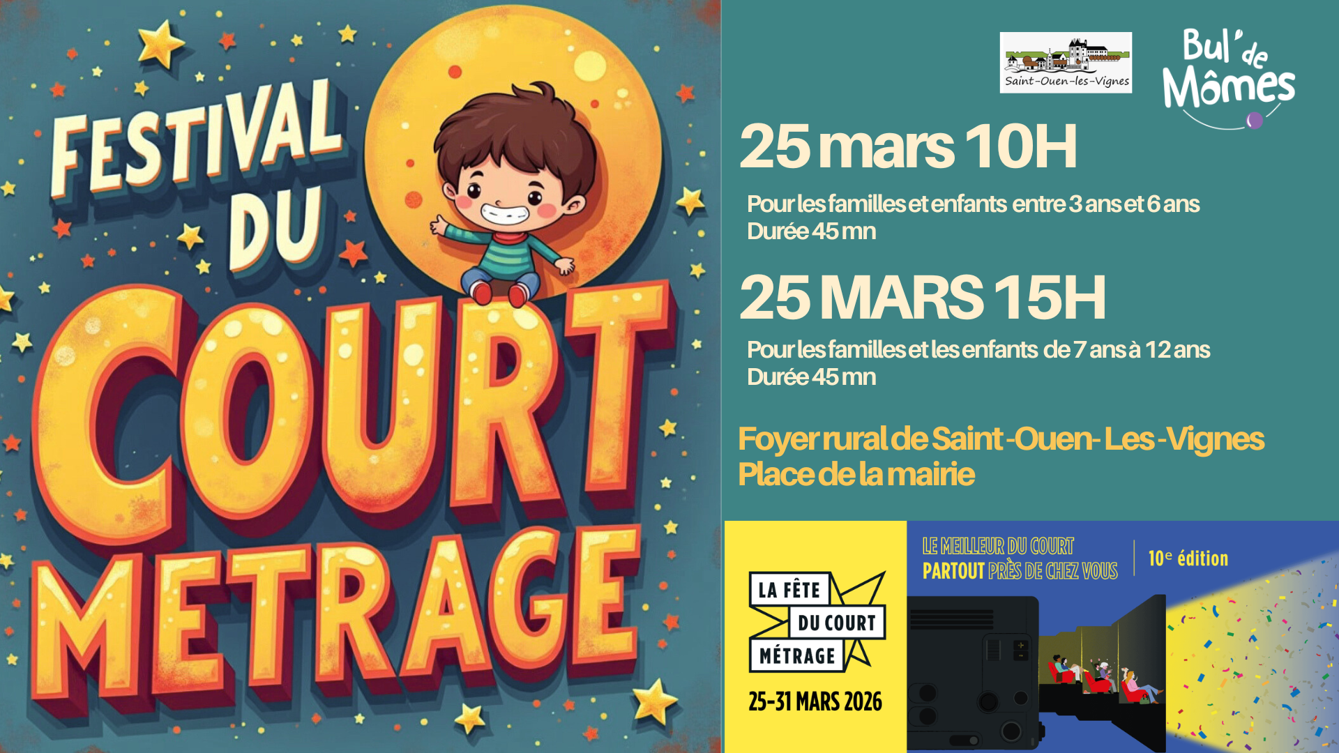 Pour les familles et les enfants nous organisons le 10 ème festival du court métrage