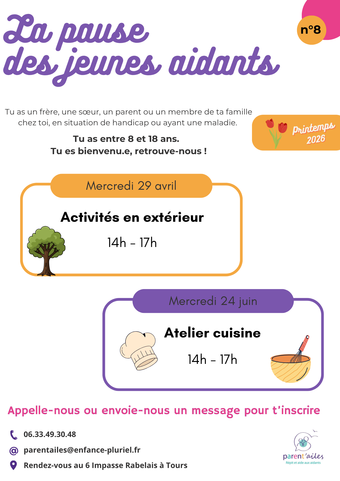 Nous vous proposons des après-midis dédiées aux jeunes aidants (8 à 18 ans), ayant un frère, une sœur ou un membre de leur entourage concerné par un handicap ou une maladie.